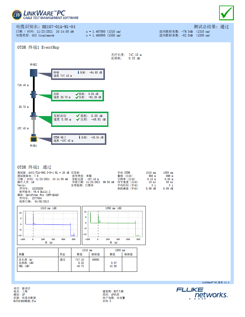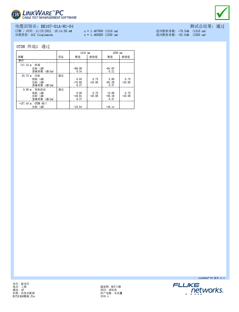 典型的光纤一级认证测试报告如下图6.1.3所示,