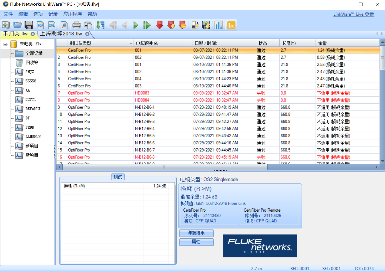 实验四 光纤认证测试