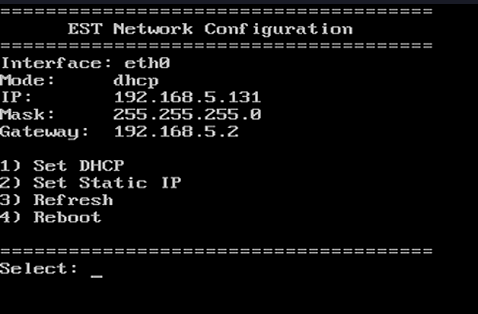 设备启动后,接入显示器,默认显示IP 配置页面